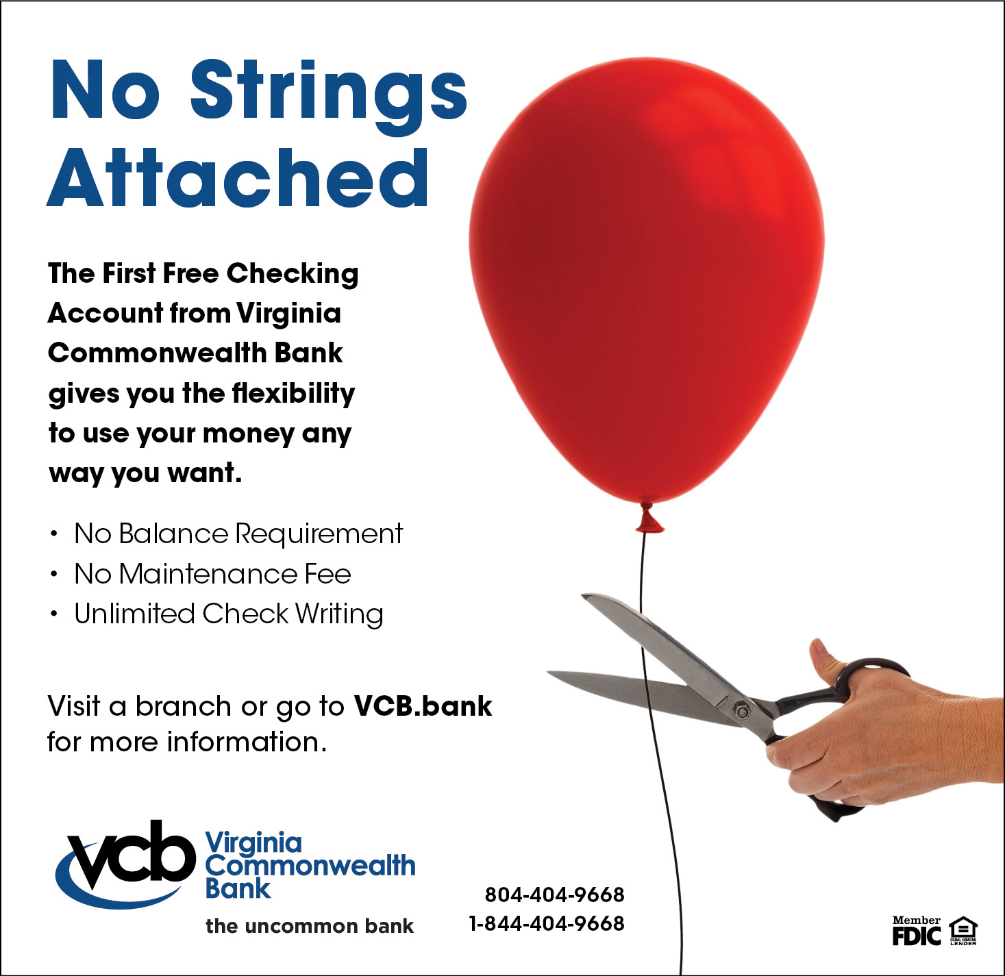 Print campaign promoting the "no strings attached" free checking service available from a regional bank.